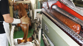 さらに加工を要する場合には機械を使って一気に作業する事もあります。冷えてしまうと固くなりますので、時間との勝負です。